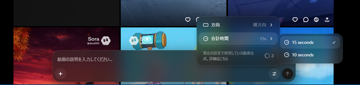 Sora2は、デフォルトだと、縦長10秒ショート動画しか作成できません。