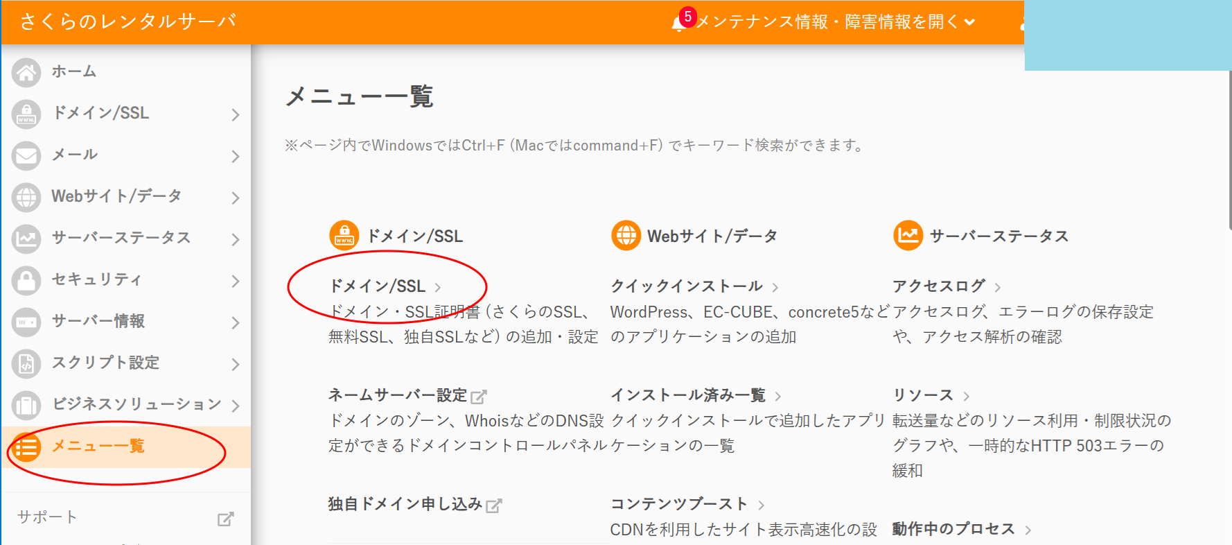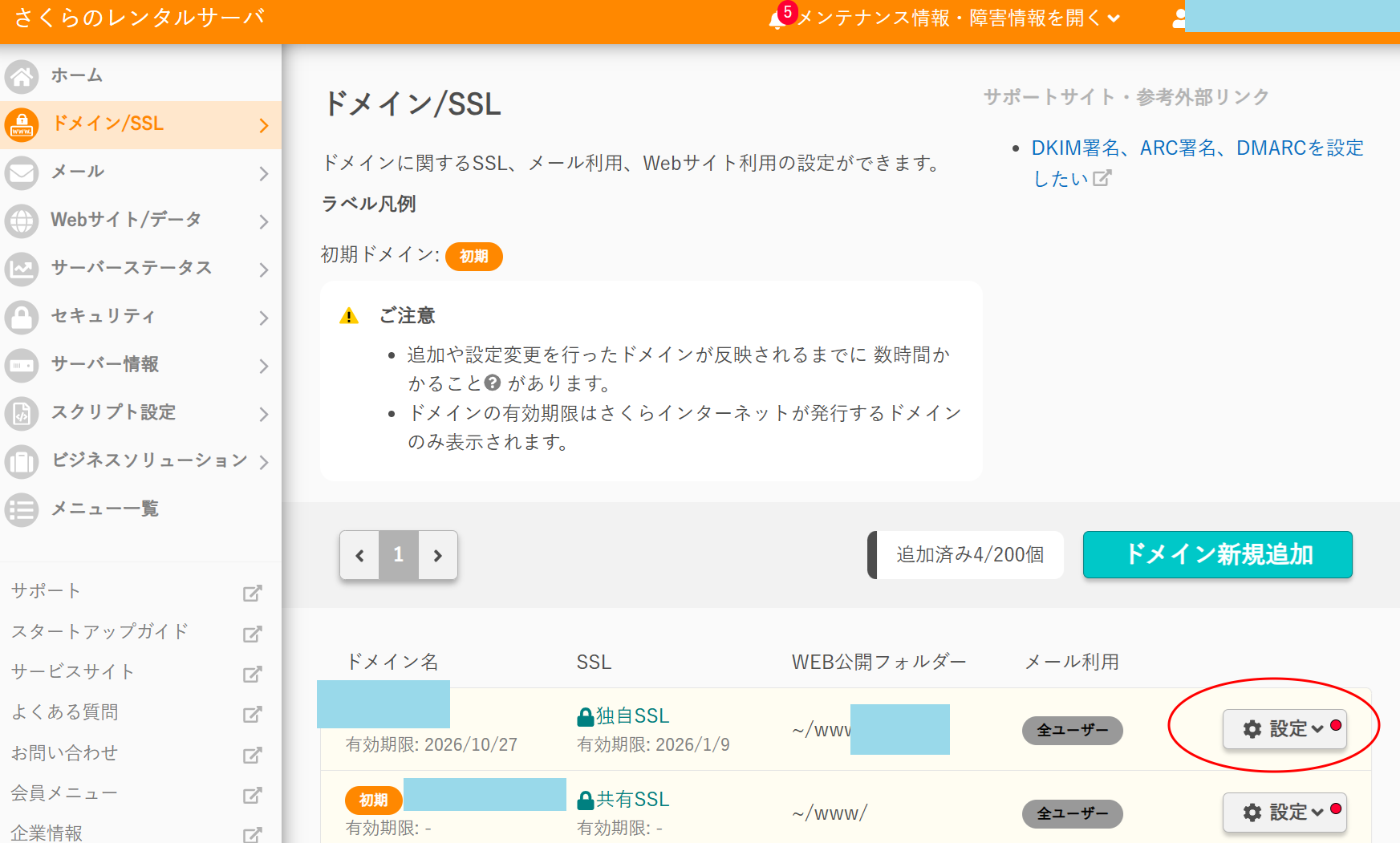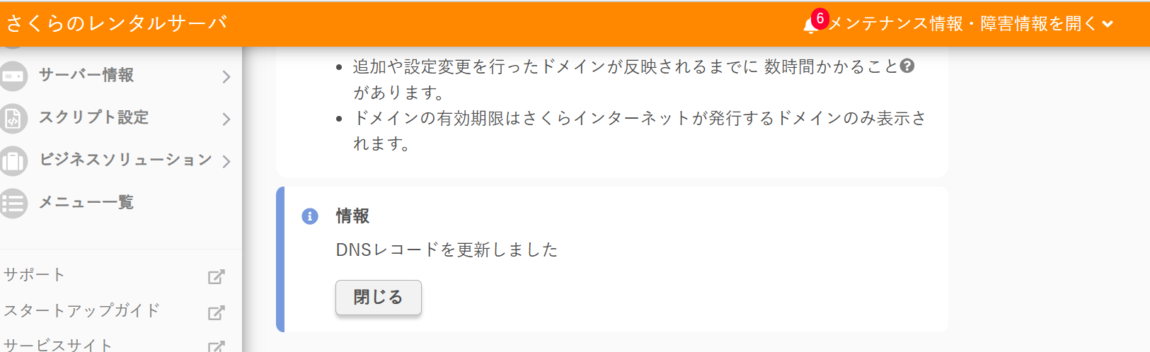 私の場合はさくらインターネットを利用しているので、さくらインターネットの場合は、以下のような手順でした。