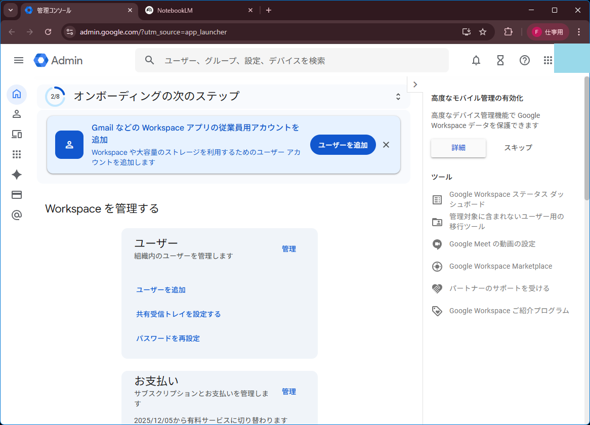 Flowをやりたくて有料アカウントを開設したGoogle Workspace。