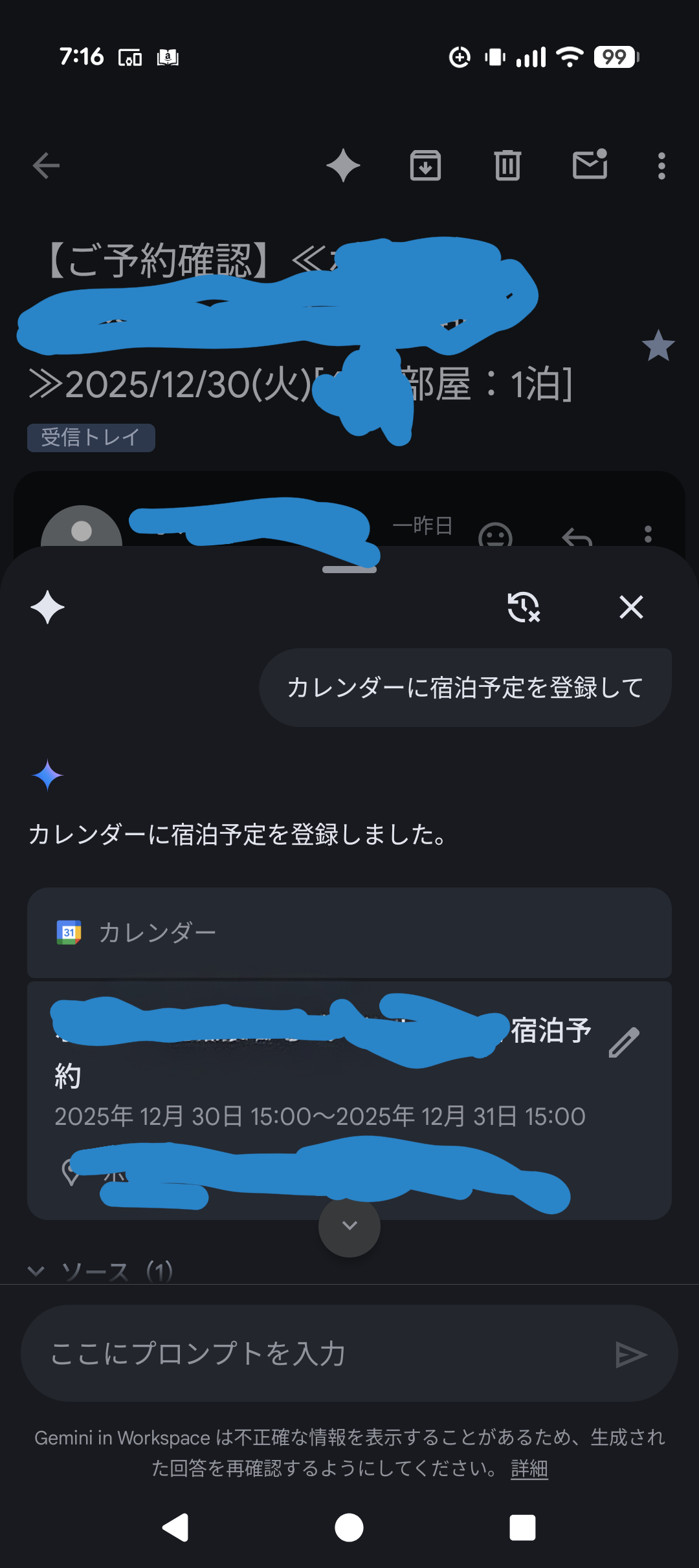 Gmailアプリ内でGemini経由で予定をカレンダーに登録