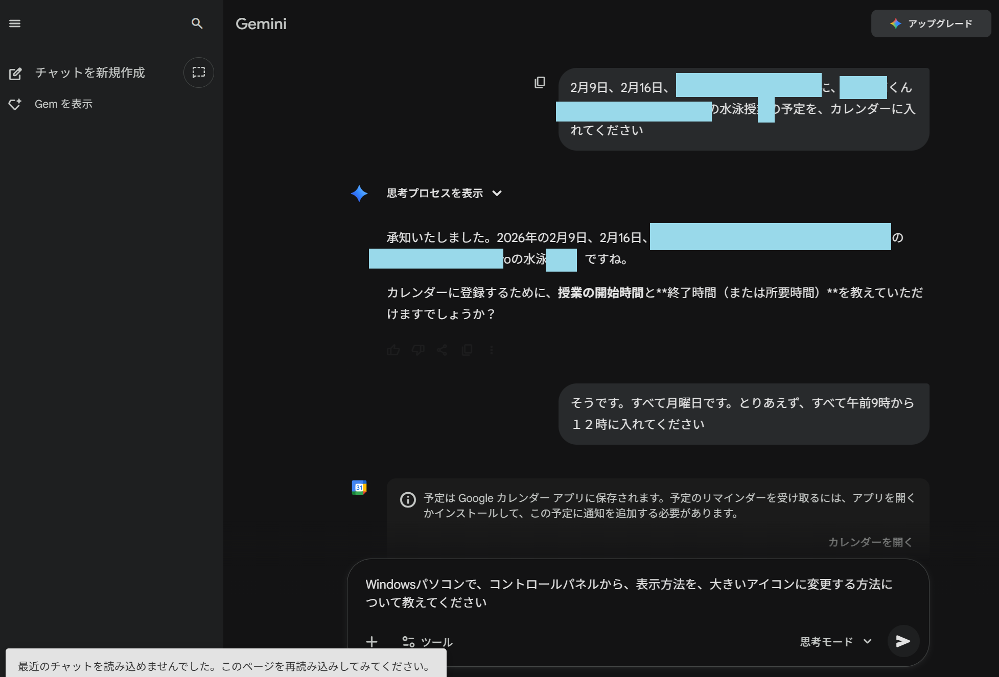 Gemini経由でGoogleカレンダーに予定を入力する(無料、2025年11月)