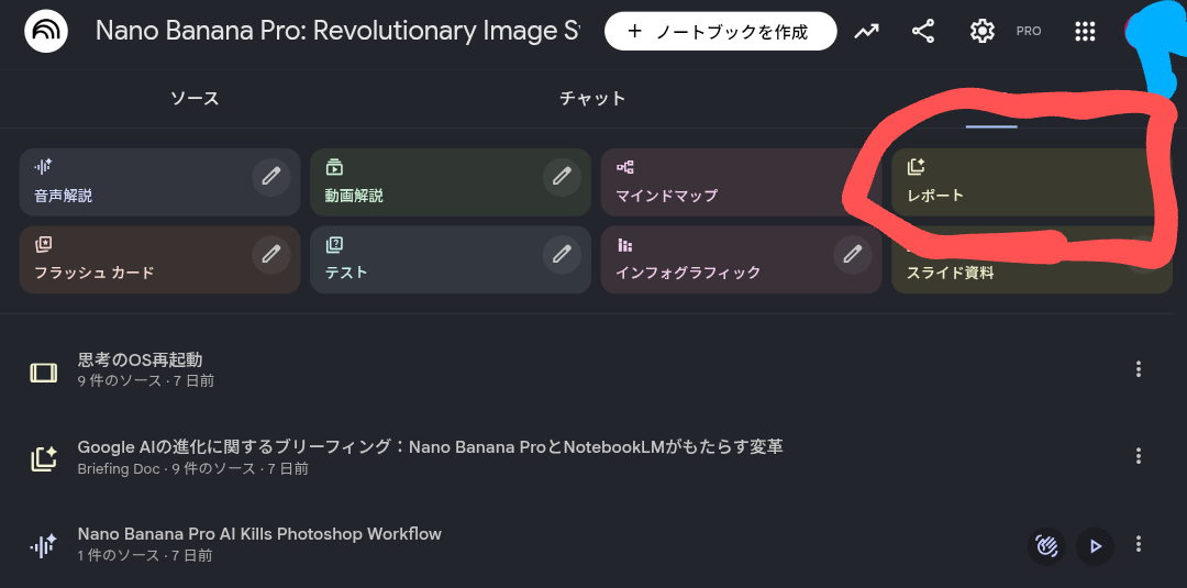 - NotebookLMのソースに、PDFやYouTubeリンクなどをぶち込む。