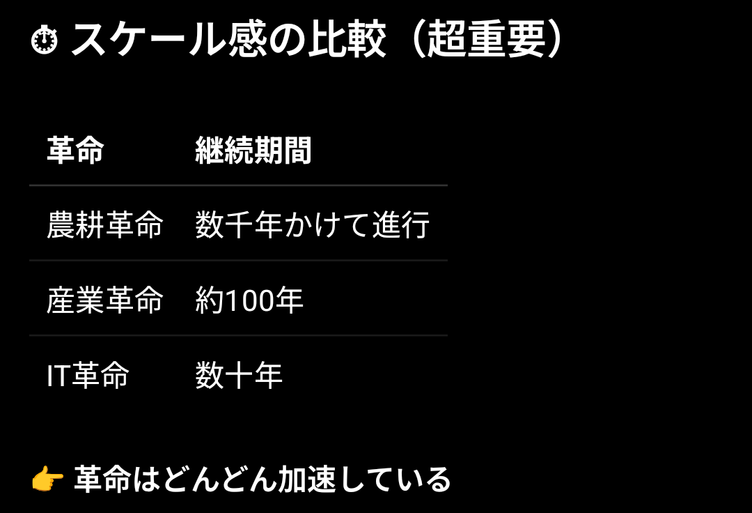 - IT革命 約50年前(1970年代〜):人類の脳を拡張した