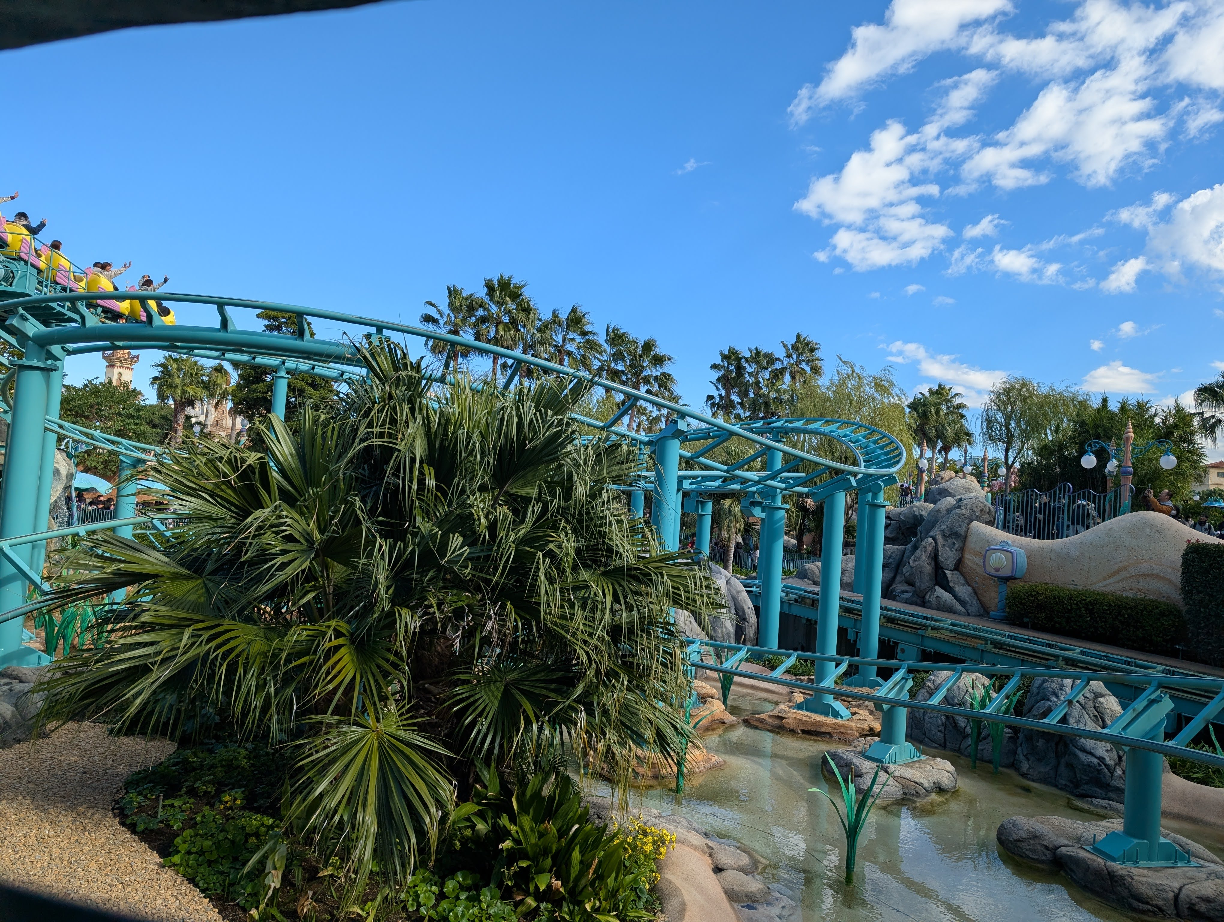 0955 フランダーのフライングフィッシュコースターに並ぶ(25分待ちの掲示)