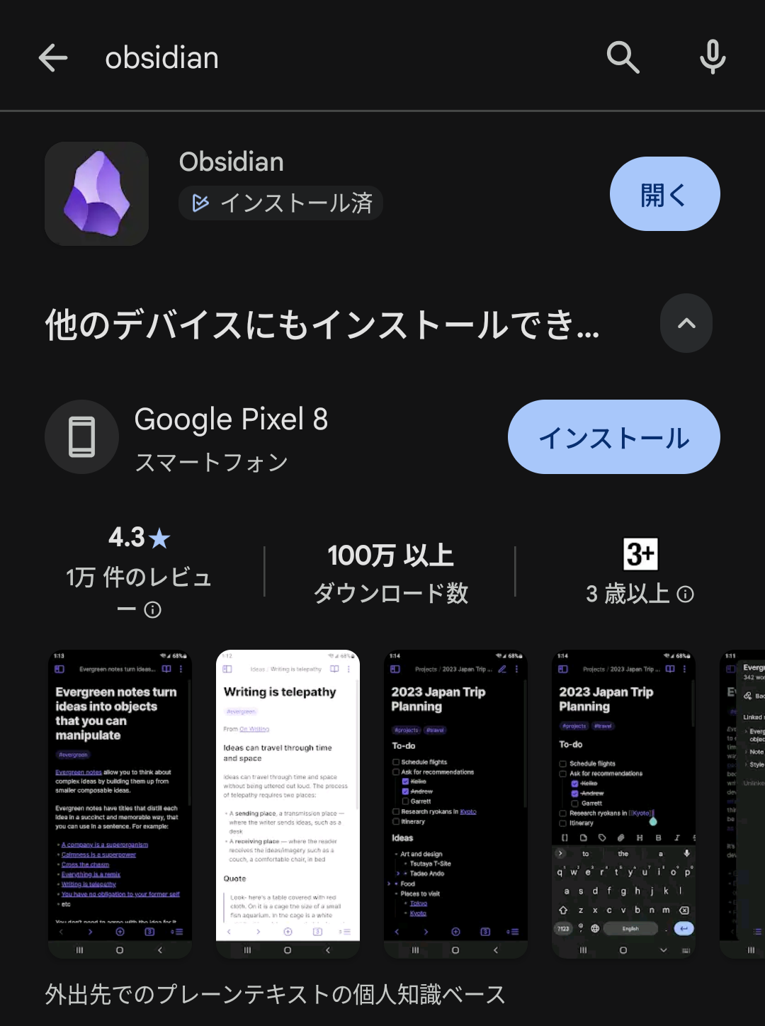 最初にObsidianに触りたくなったのが外出先だってので、Androidスマホで最初に環境構築をtryしてみる。