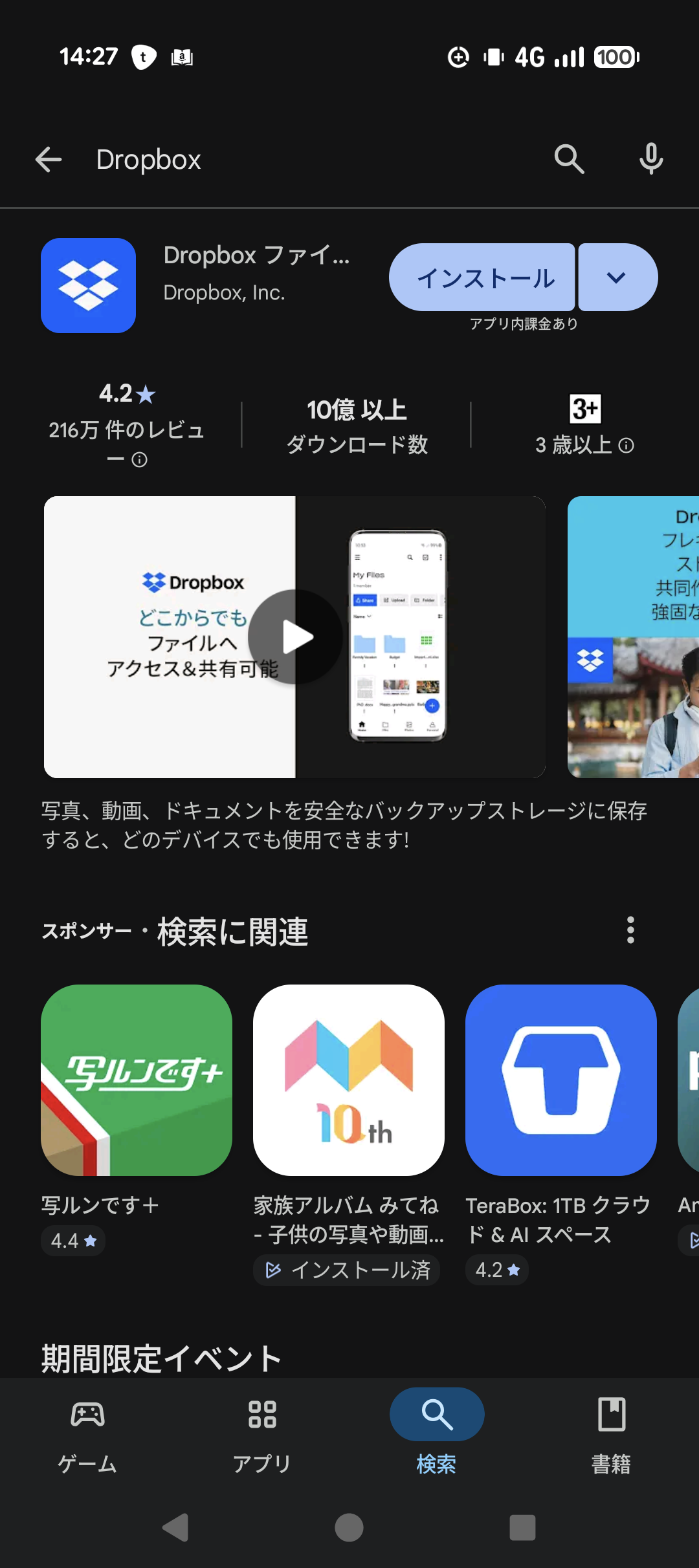 AndroidスマホにDropboxアプリをインストールしてGoogleログインして新規Dropboxアカウントを作成しました。