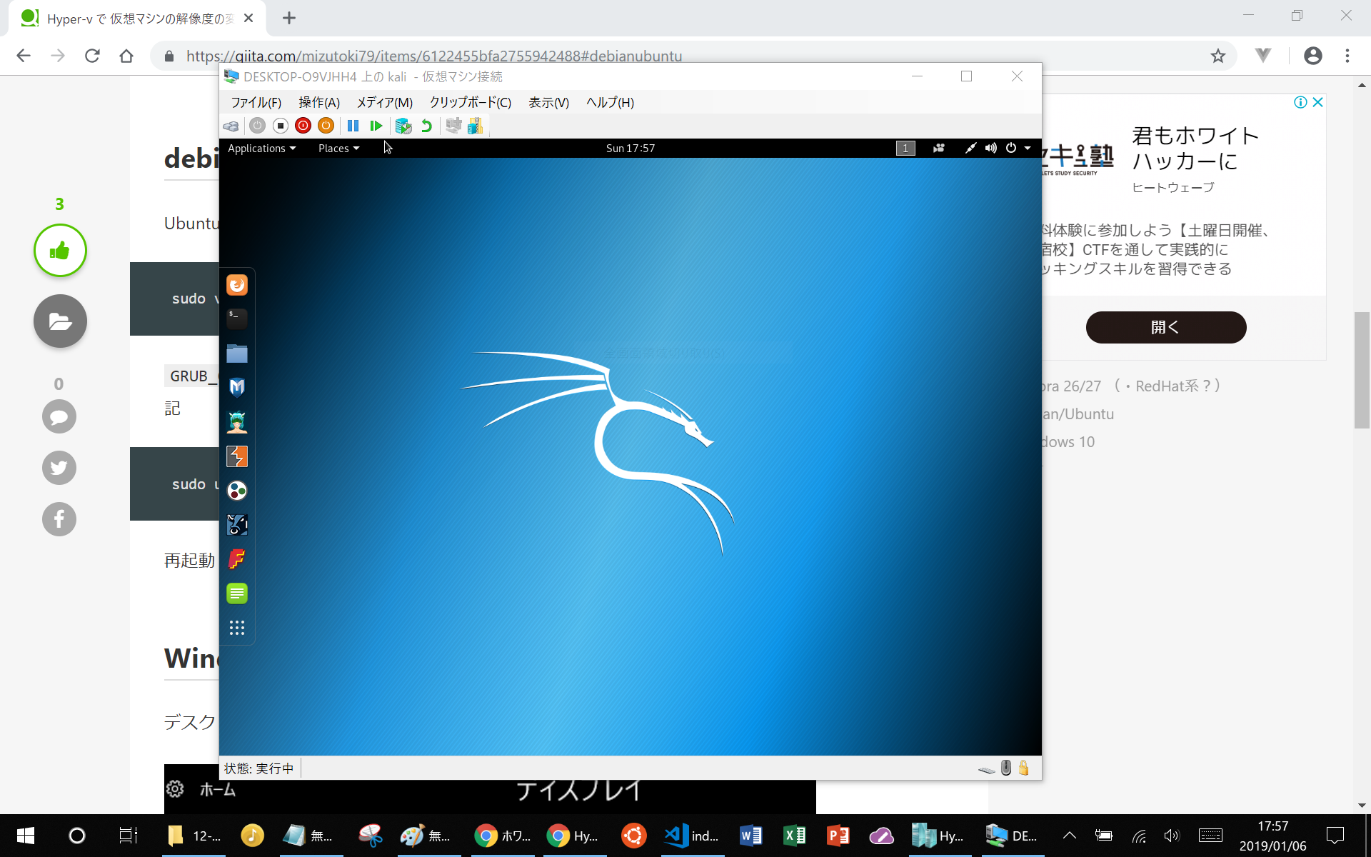 02.windows10proでhyper-v上のkalilinuxの設定