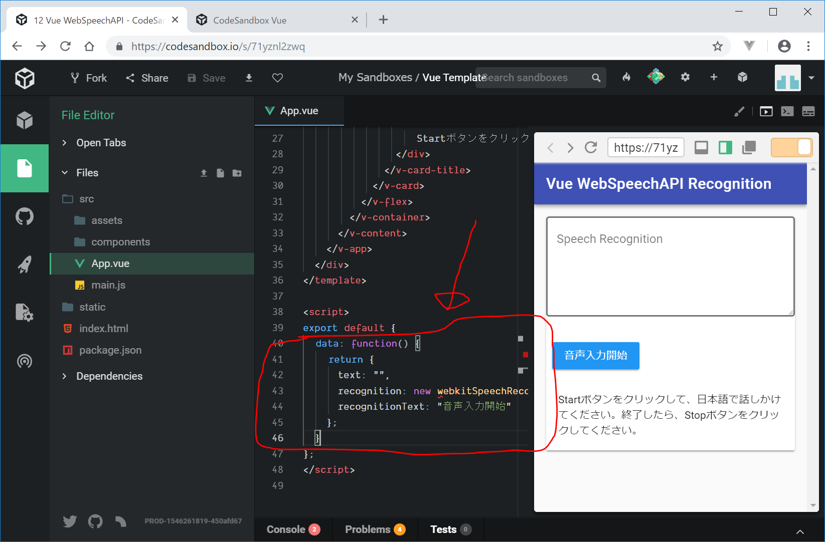 12.vue.jsとwebspeechapiで音声認識アプリ
