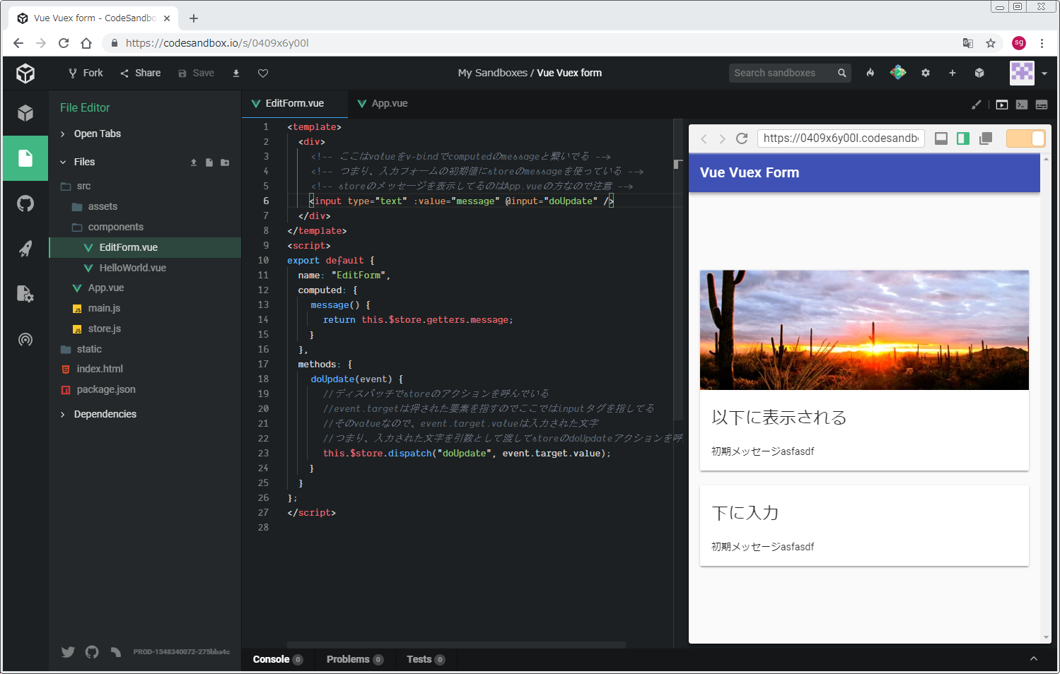 14.vue.jsのvuexで入力フォーム