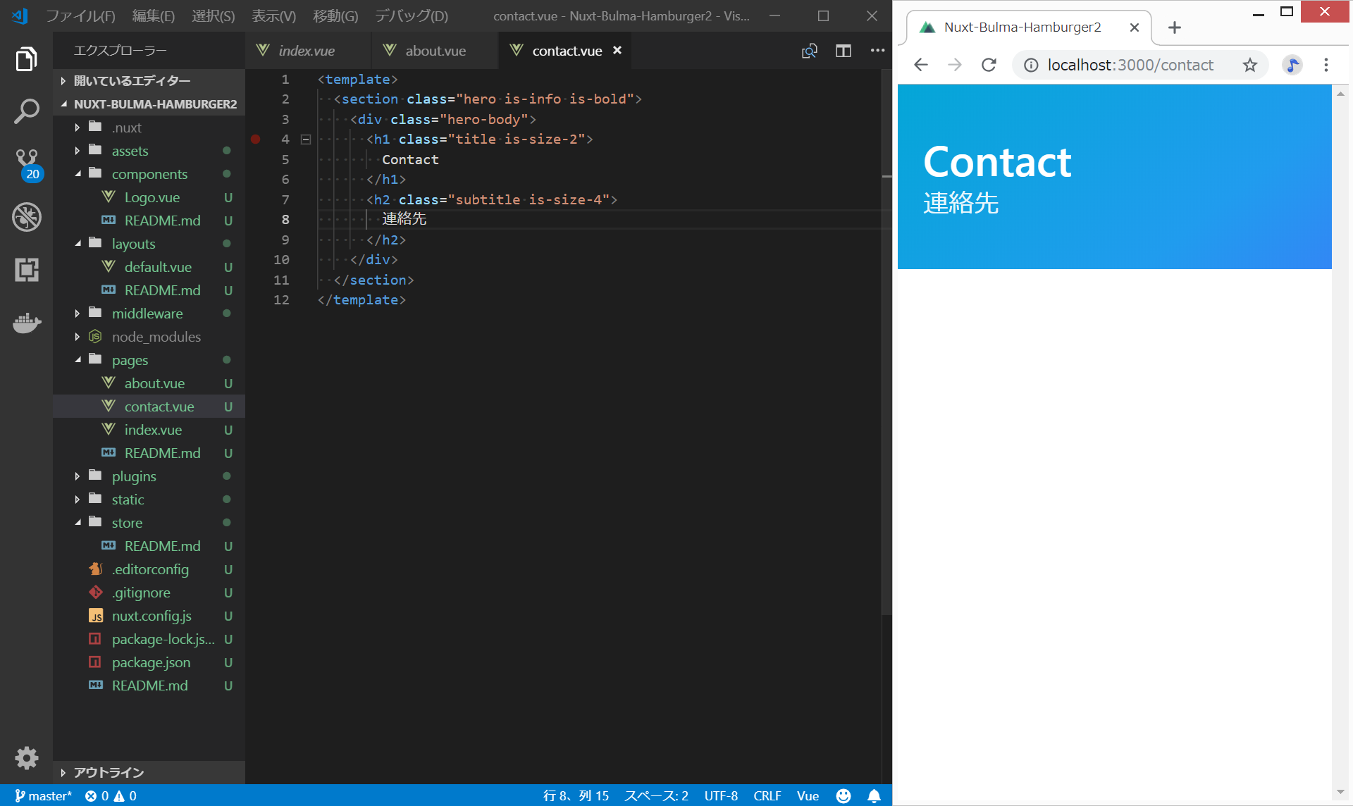 nuxt.jsとbulmaでハンバーガーメニュー