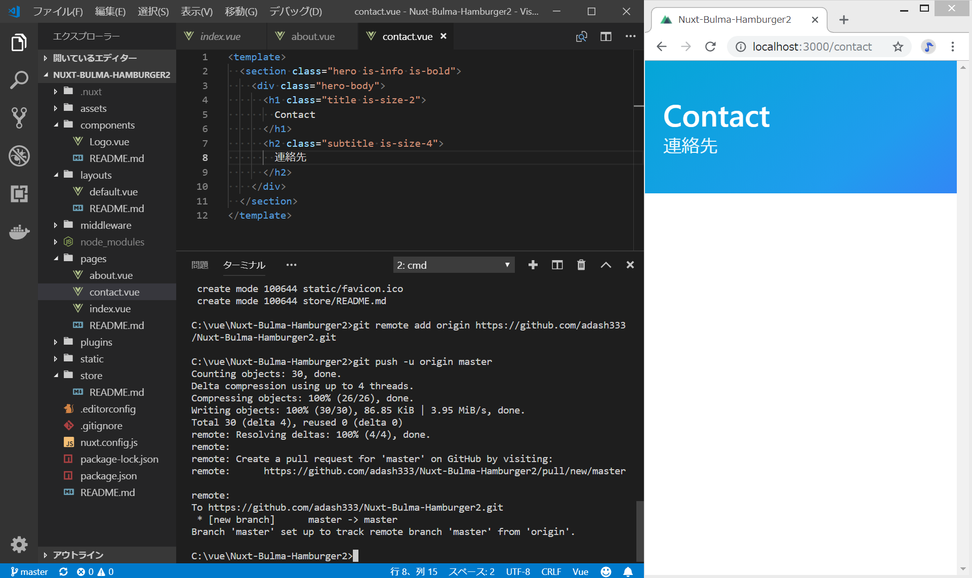 nuxt.jsとbulmaでハンバーガーメニュー