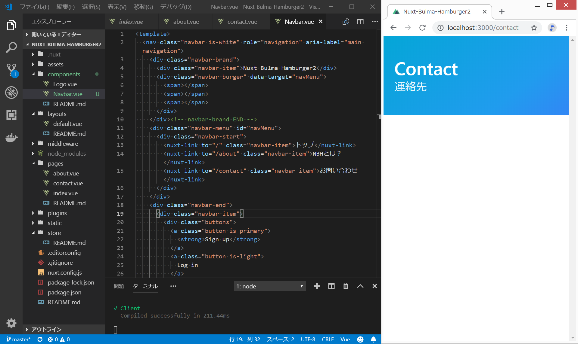 nuxt.jsとbulmaでハンバーガーメニュー
